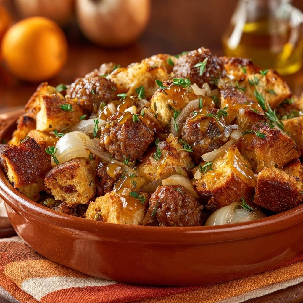 Ever bite into a stuffing bake only to hit that dreaded mushy layer underneath? This French Onion Meatball Stuffing Bake fixes it all. You toast the bread cubes bone-dry first, so they stay crispy even after baking. No more soggy disappointment, just golden crunch that holds up to juicy meatballs and caramelized onions.
