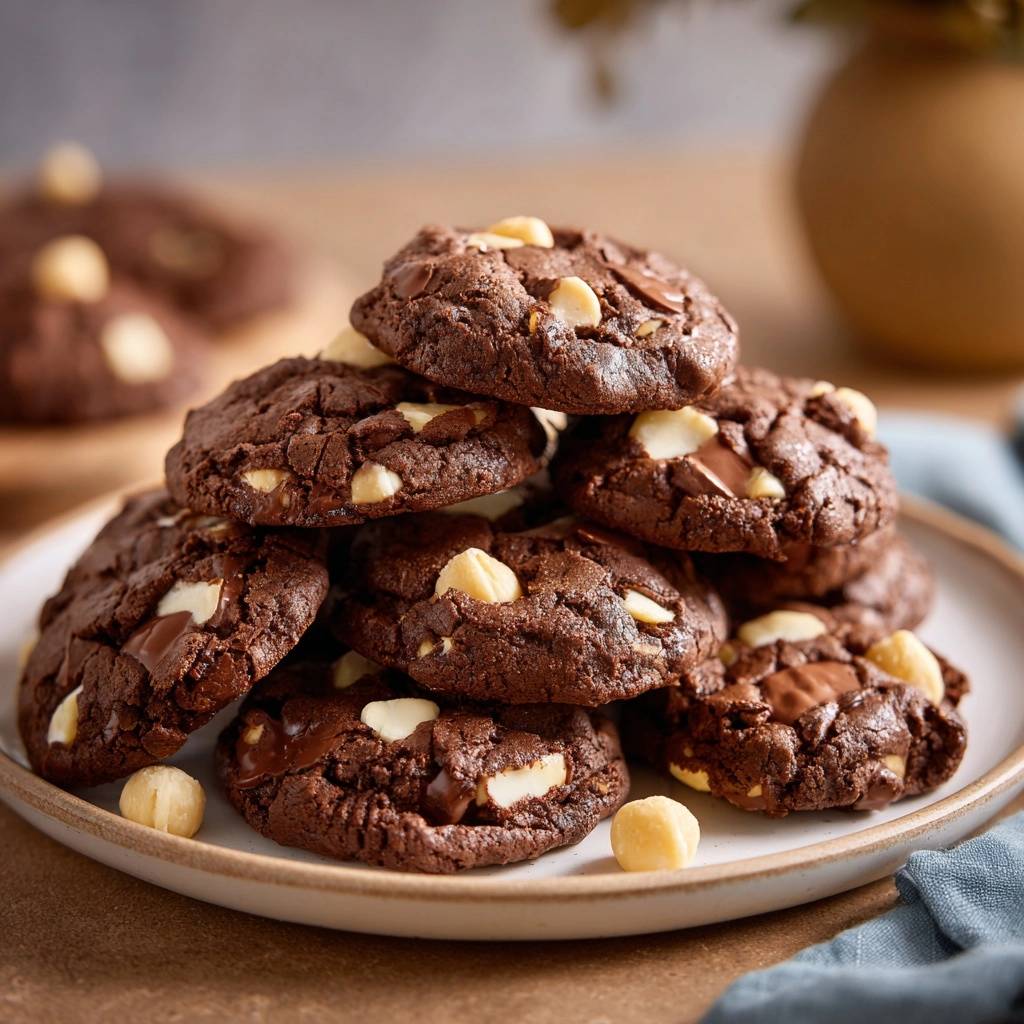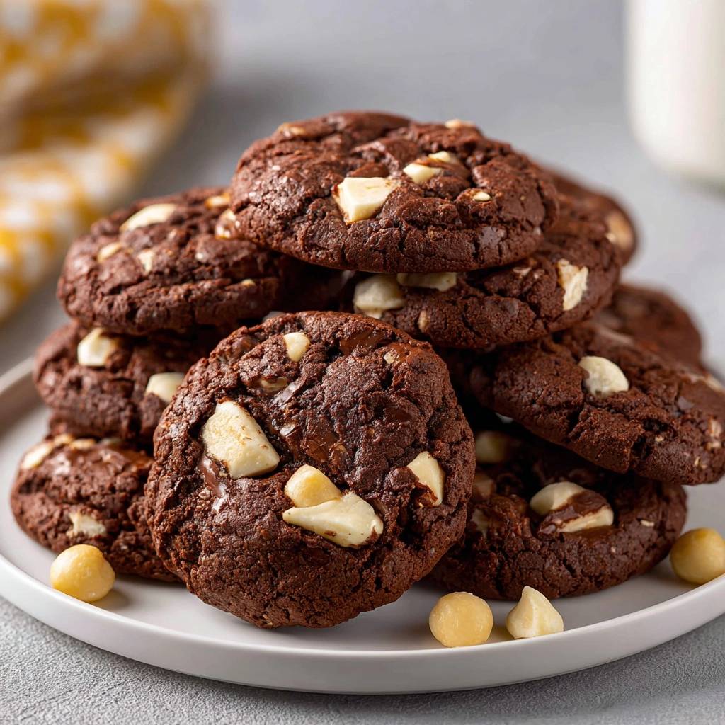 Add espresso powder to cocoa for depth, or go gluten-free with 1:1 flour. Coconut flakes or dried cherries pair well too. Keep core fudgy for fudgy chocolate macadamia white chip cookies magic.