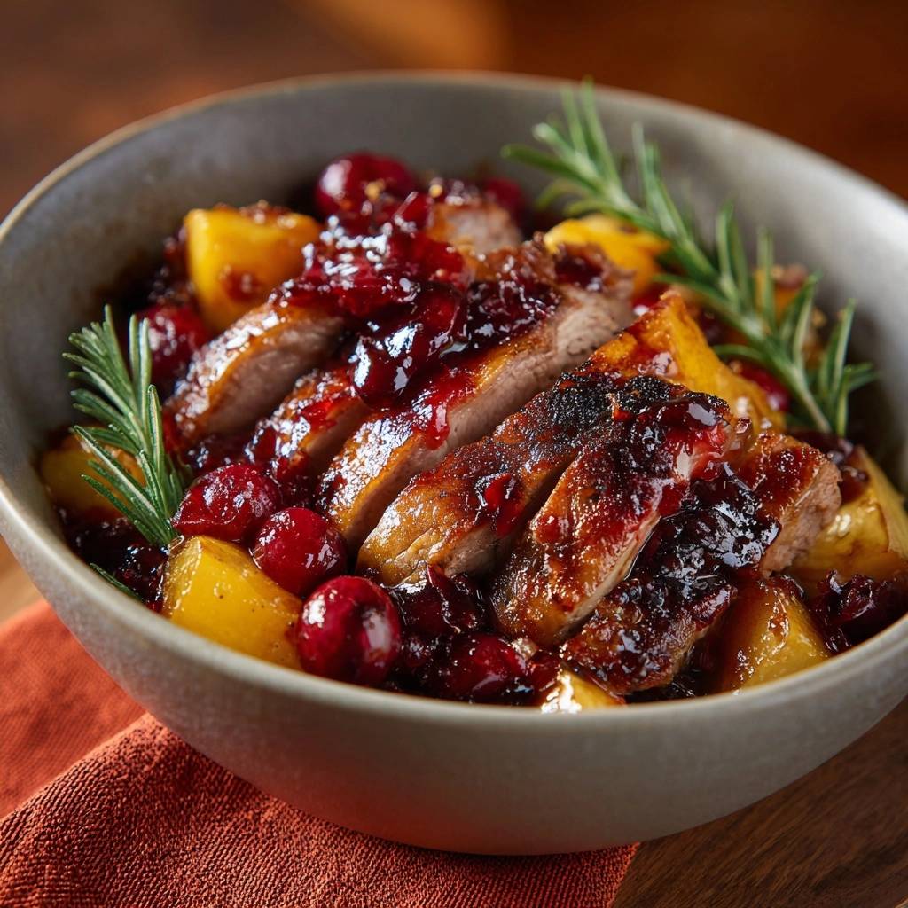 Aim for 130F internal for medium-rare; carryover cooking finishes it. Meanwhile, fruit pectin in the compote thickens naturally into a glaze. Therefore, every element shines.