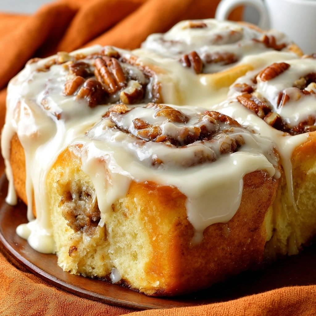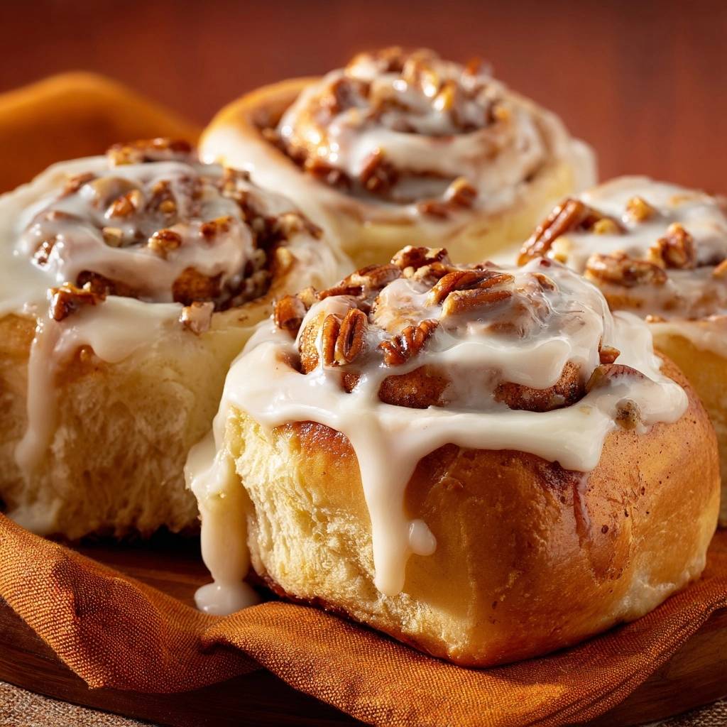 Beat softened cream cheese and butter until creamy, then add powdered sugar, vanilla, and milk gradually until spreadable. Slather over warm gooey pecan cinnamon rolls; it melts into every nook for ultimate indulgence. Pull apart and dig in.