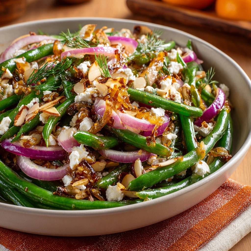 Ever scorched your onions while chasing that golden caramelization? Most folks crank the heat too high and end up with bitter bits ruining the dish. This Green Bean Salad with Caramelized Onions, Feta & Almonds fixes that with a low-heat stir-and-steam trick that delivers jammy sweetness every time.