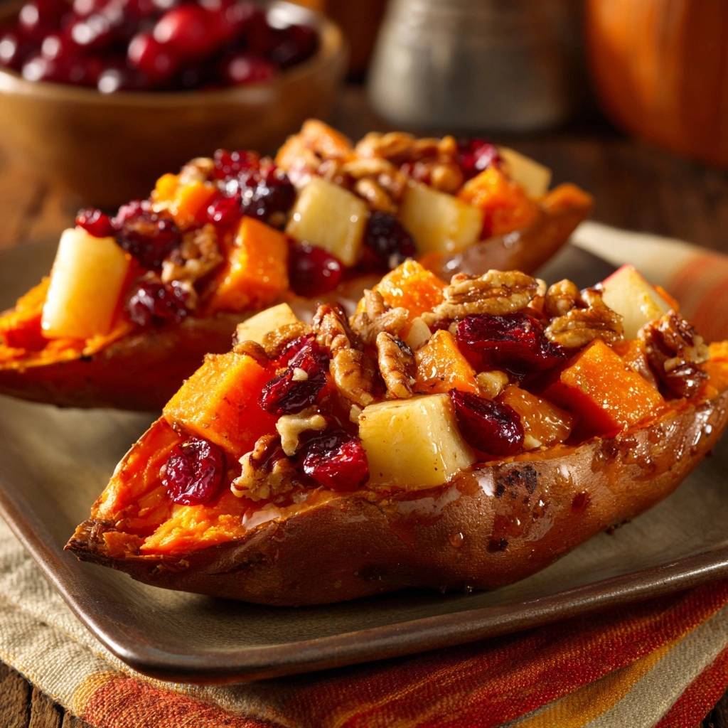 - Stuff the potatoes generously, ensuring the bright orange potato chunks are visible amongst the apples and cranberries. The residual heat from the potato will slightly soften the apples and plump the cranberries while maintaining a fresh crunch. Serve immediately.