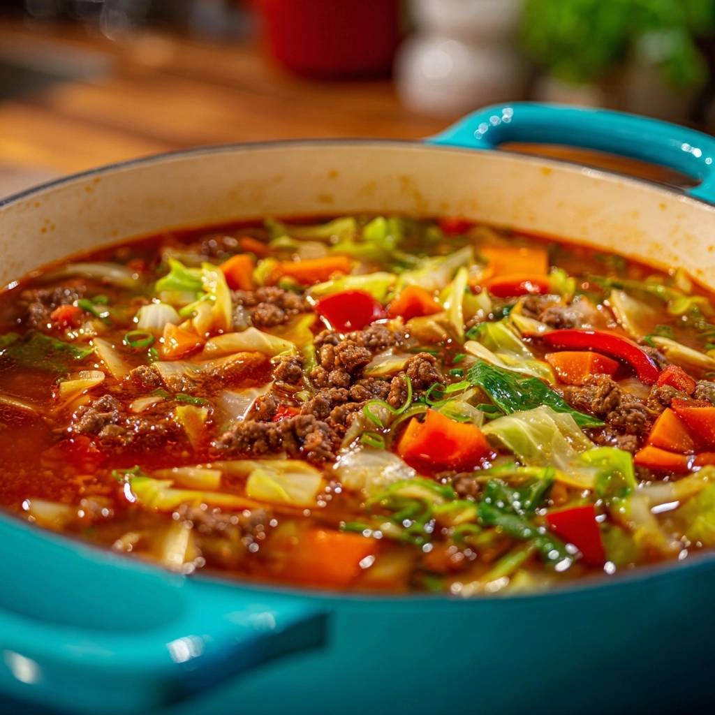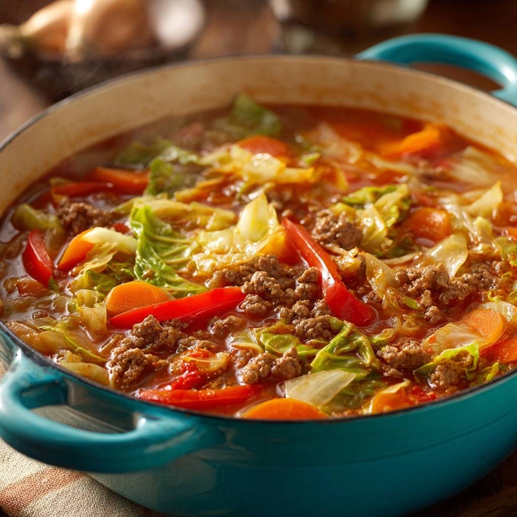 Shopping tip: Choose firm cabbage with crisp leaves. For a lighter twist, swap beef for ground turkey, but keep the cabbage green for best texture in your beef cabbage soup base.