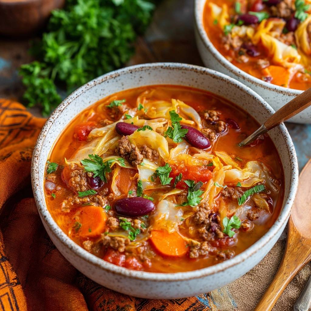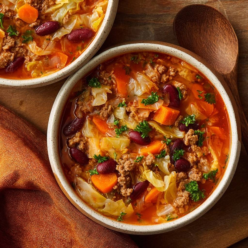 Ever spoon into a beef cabbage soup only to hit that disappointing mush? This hearty beef cabbage soup changes everything. You get rich, tomato-laced broth hugging tender-crisp cabbage, chunks of browned ground beef, sweet carrots, and creamy kidney beans. All in one pot, ready in under an hour.