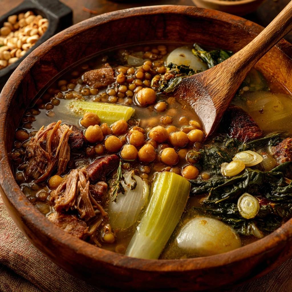 Ever bitten into a hearty beef lentil chickpea stew with greens only to hit chewy, rubbery chunks that ruin the whole bowl? You’re not alone. Most home cooks skip the crucial sear, so their beef stays tough no matter how long it simmers. But this recipe changes everything with a simple sear-and-simmer trick that turns budget chuck roast into shreddable, juicy perfection.