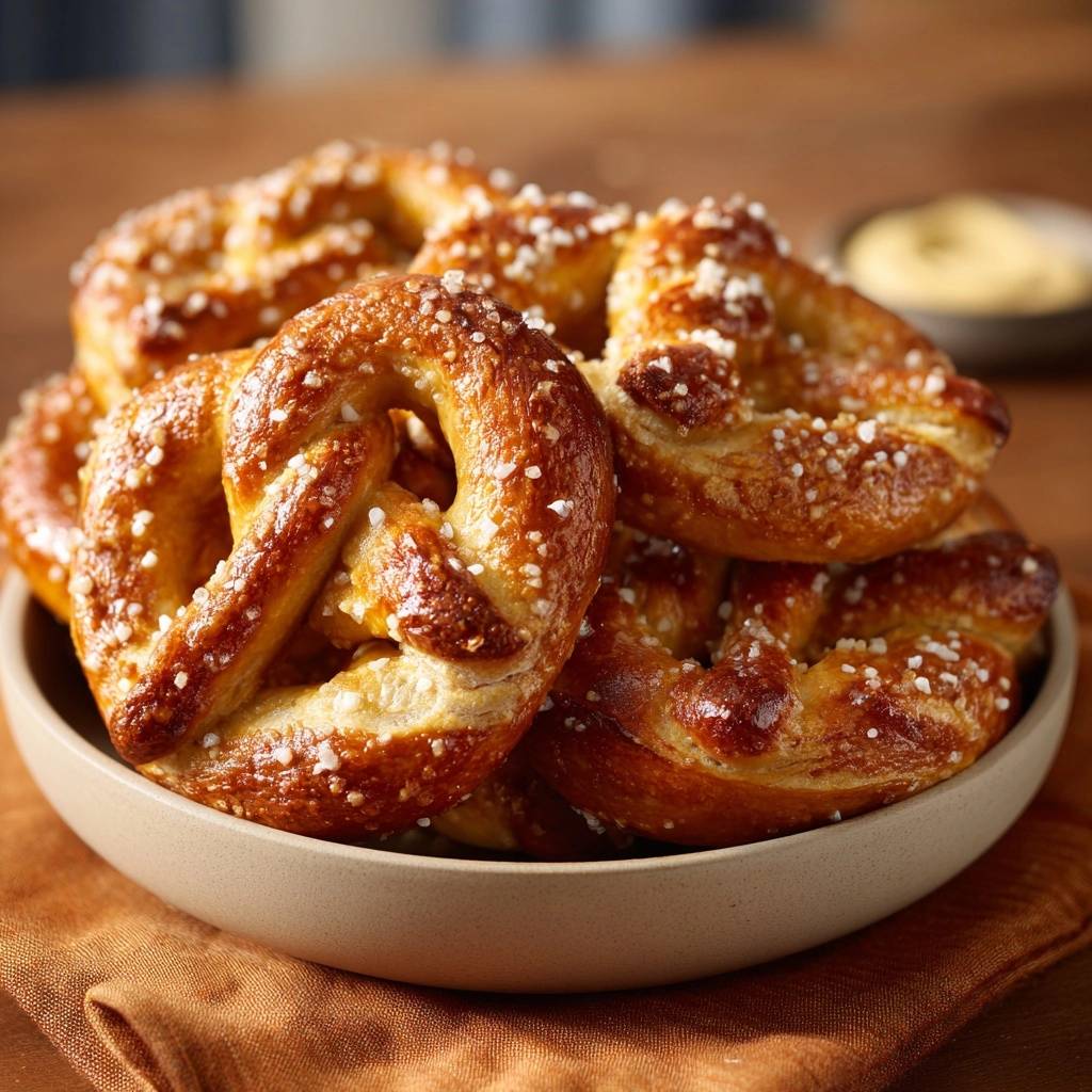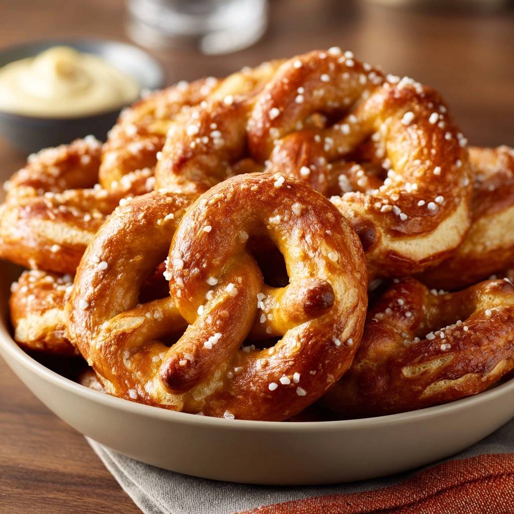 Full pretzels airtight 2 days; reheat 350°F 5 minutes revives crisp. Double recipe for 16 easily.