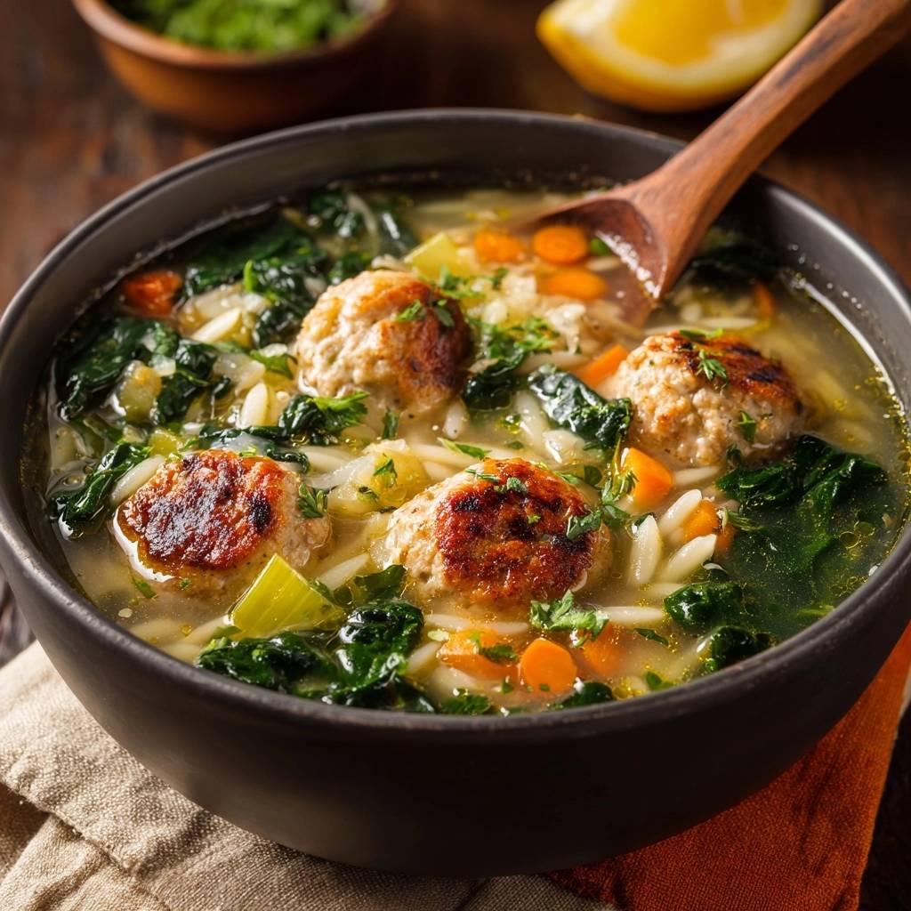 - To prevent the orzo from absorbing too much liquid, serve the soup immediately after the final simmer. Searing the meatballs is essential for the flavor crust and visual contrast.
