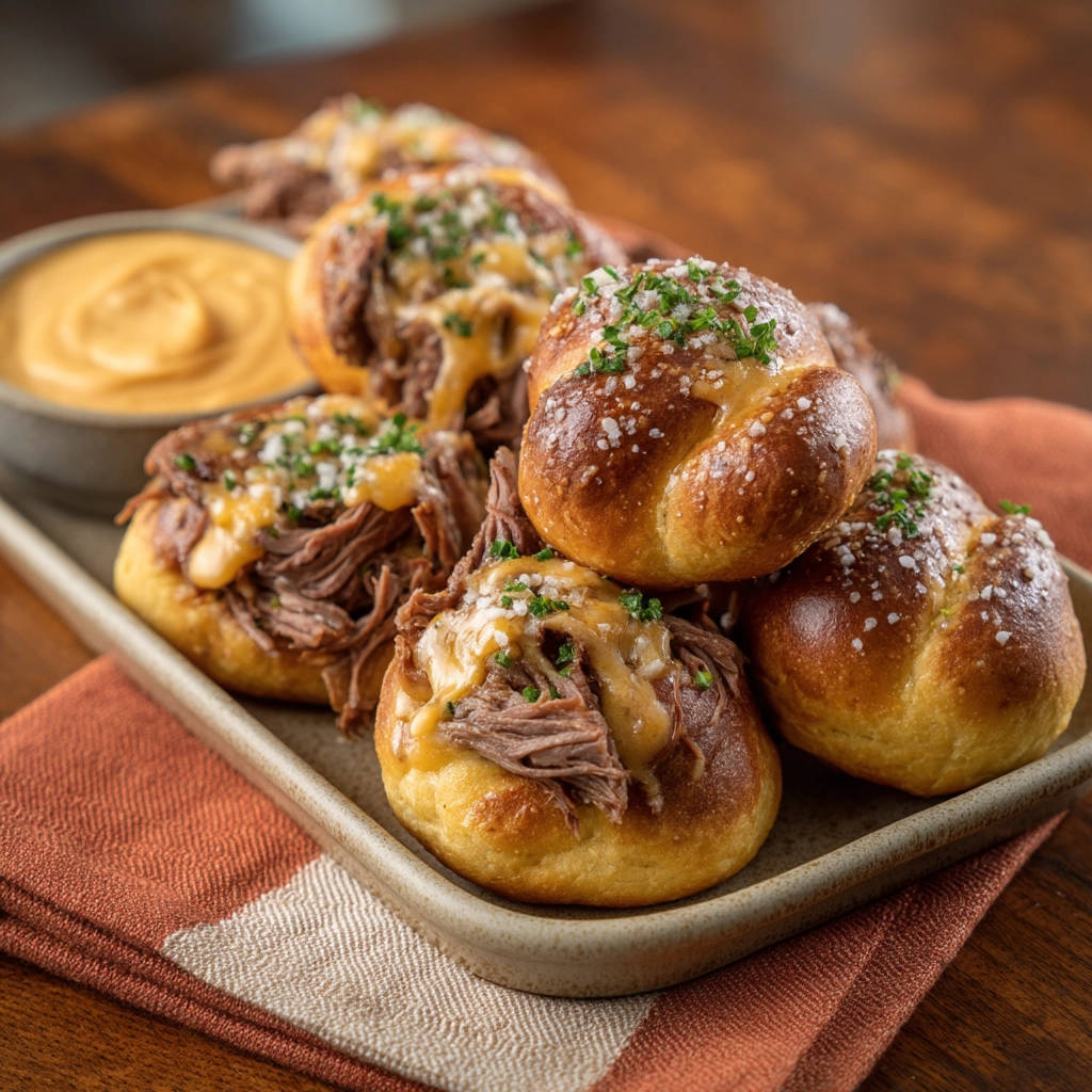 These aren’t just any sliders; they’re packed with flavor, super moist shredded beef, and a gooey blanket of melted cheese, all nestled in soft, slightly sweet pretzel or slider buns. Plus, there’s an optional, but highly recommended, cheese sauce for dipping that takes them completely over the top. They’re absolutely perfect for game day, parties, family dinners, or just when you’re craving something seriously satisfying. Get ready for rave reviews!