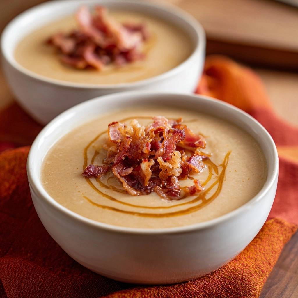 If you want a spicy kick, try adding a tablespoon of harissa paste or a teaspoon of red pepper flakes during the onion sauté. The heat pairs beautifully with the creamy base and the smoky beef bacon. It transforms the soup into something much more adventurous.