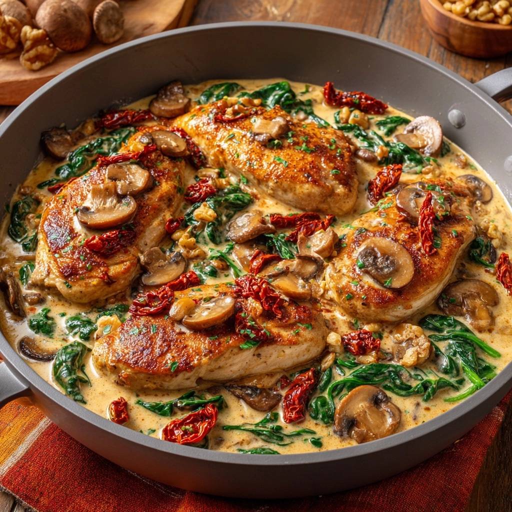 Creamy Sun-Dried Tomato and Mushroom Chicken