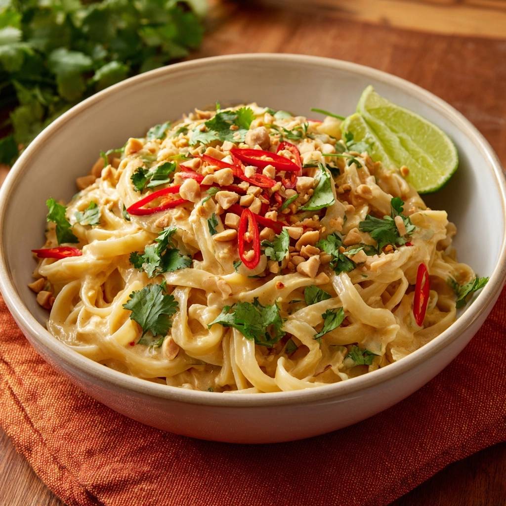 Don’t forget the fresh cilantro and the lime wedges on the side. The lime isn’t just a decoration; the diner should squeeze it over the noodles right before eating. That hit of fresh acid cuts through the creamy coconut milk and peanut butter, making the whole dish feel much lighter and more vibrant.