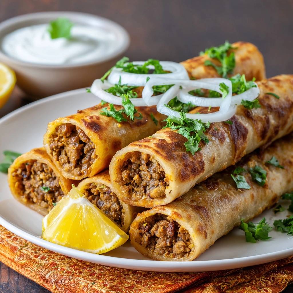 Fresh ginger paste and minced garlic are non-negotiable for that authentic, punchy flavor profile. I prefer finely dicing the onions rather than slicing them into long strips for the filling. Small, uniform pieces of onion soften into the meat, ensuring the filling stays compact so your roll doesn’t fall apart when you take a bite.