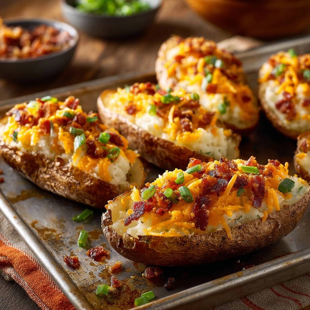 If you’re serving these at a party, they also work well alongside a platter of roasted vegetables. Asparagus or charred broccoli with a squeeze of lemon juice provides a nice pop of color and a fresh, earthy contrast to the loaded potatoes. It’s a classic comfort meal that never fails to impress.