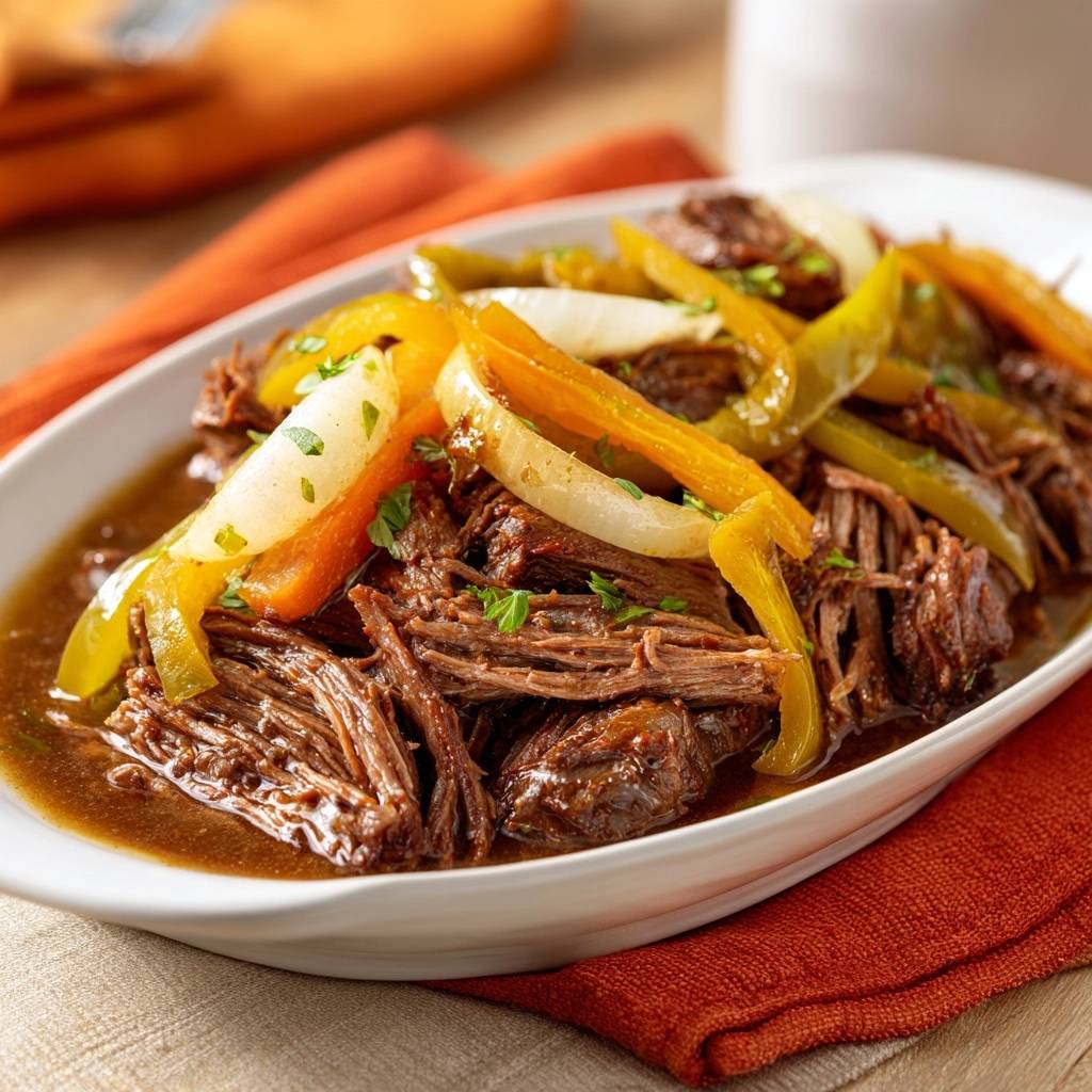 To balance the richness of the beef fat and the sweetness of the cooked peppers, consider adding a bright, acidic element to the table. A simple arugula salad with a sharp lemon vinaigrette or some quick-pickled red onions can cut through the heaviness of the braise. This contrast refreshes your palate between bites, making the rich beef taste even better. Avoid heavy, cheesy sides that might compete with the deep savory notes of the roast.