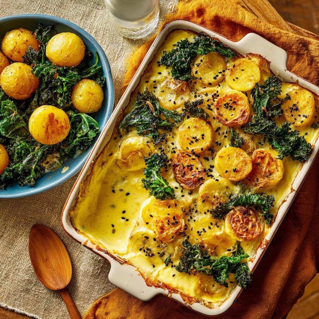 Creamy Golden Potato and Kale Bake