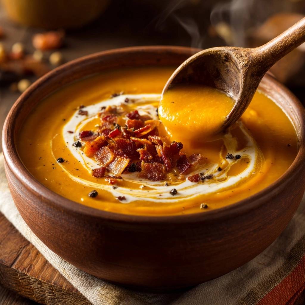 A soup this rich and sweet needs a sharp, salty counterpoint to keep your palate excited. Crispy beef bacon provides a smoky, savory crunch that cuts right through the creaminess of the roasted squash. When you render the beef bacon until it’s shattered-glass crisp, it adds a necessary textural layer that prevents the dish from feeling one-dimensional or overly soft.