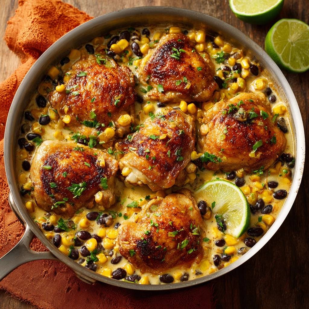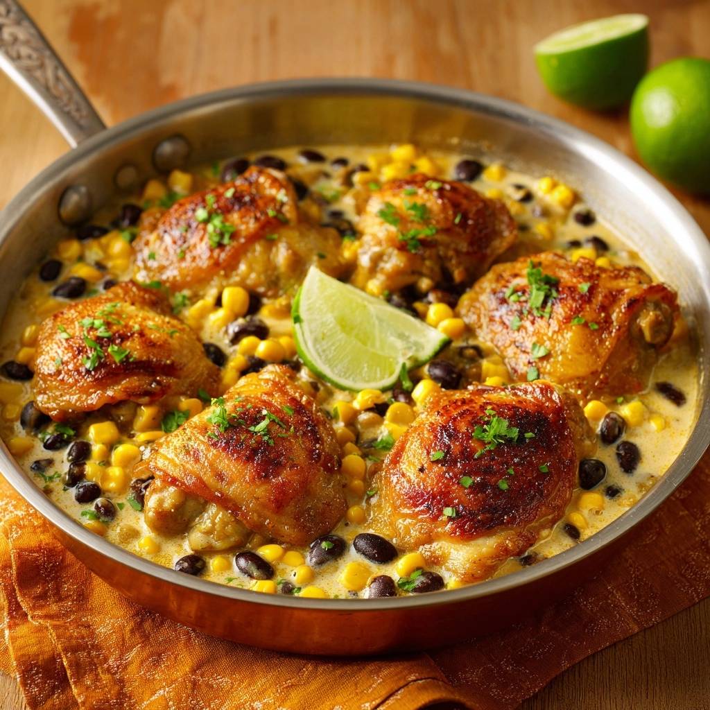 You really need bone-in, skin-on thighs for this specific technique. Chicken breasts are too lean and will dry out long before the sauce has reduced to the proper consistency. The bone acts as a heat conductor, ensuring the meat cooks evenly from the inside while the skin protects it from the outside. Plus, the rendered fat from the thighs provides the flavorful base for sautéing your corn and beans.