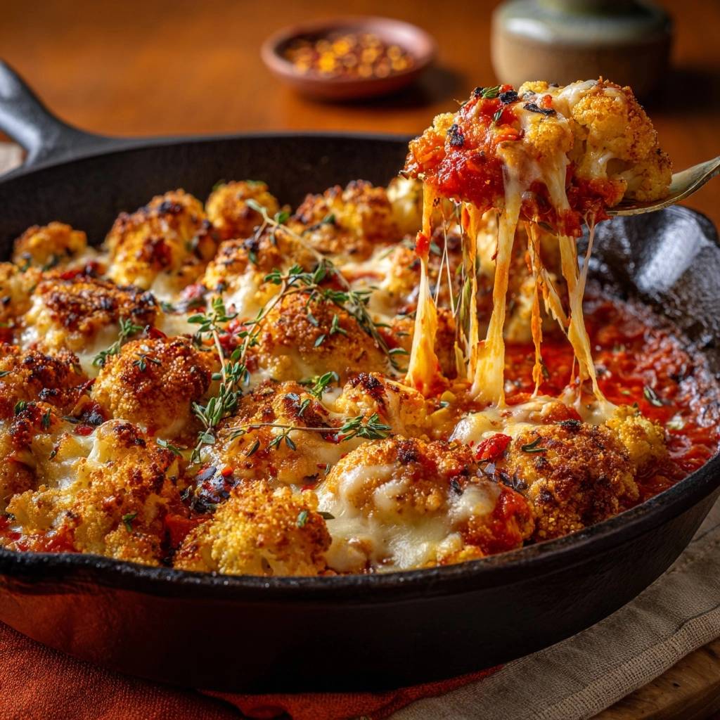 To bring back the crunch, use an air fryer or a toaster oven. Reheat at 375°F for about 5 to 8 minutes. This dry heat will re-crisp the Parmesan crust and warm the sauce through without overcooking the cauliflower. It’s the only way to do justice to the “Anti-Soggy” method you worked so hard to achieve!