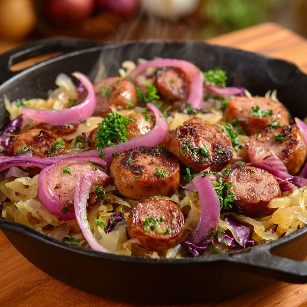 Imagine biting into a thick slice of smoked sausage that actually snaps, its salty juices mingling with cabbage that has been seared until the edges are golden and sweet. Most people expect sauerkraut to be a soggy, pale pile of mush that swims in a pool of thin brine. However, when you treat this humble fermented vegetable with the respect of a high-heat sear, it transforms into something entirely different.