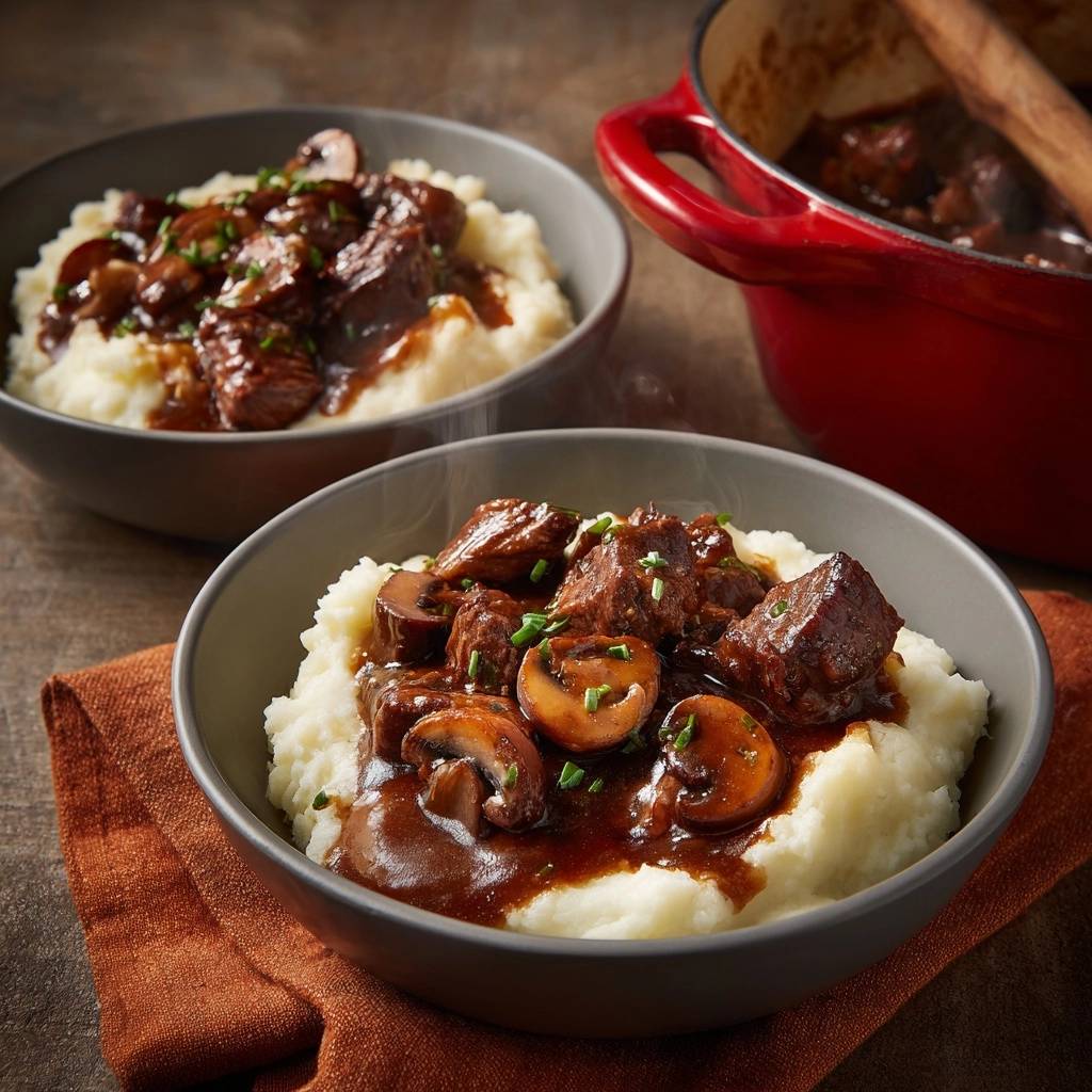 This stew is designed to be served over a mountain of creamy mashed potatoes. The potatoes act as a canvas for the dark, glossy gravy. However, if you want to switch things up, wide egg noodles or a thick bed of polenta also work beautifully. You want something that can soak up every last drop of that sauce.