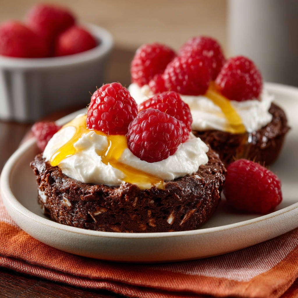 Once the chocolate bites are completely cool, it’s time for the finishing touches. Place a generous dollop of the fresh whipped cream on top of each bite. Arrange a few fresh raspberries on top of the whipped cream, and finish with a light drizzle of honey or simple syrup. The contrast of the rich chocolate, creamy topping, and tart berries is simply divine!