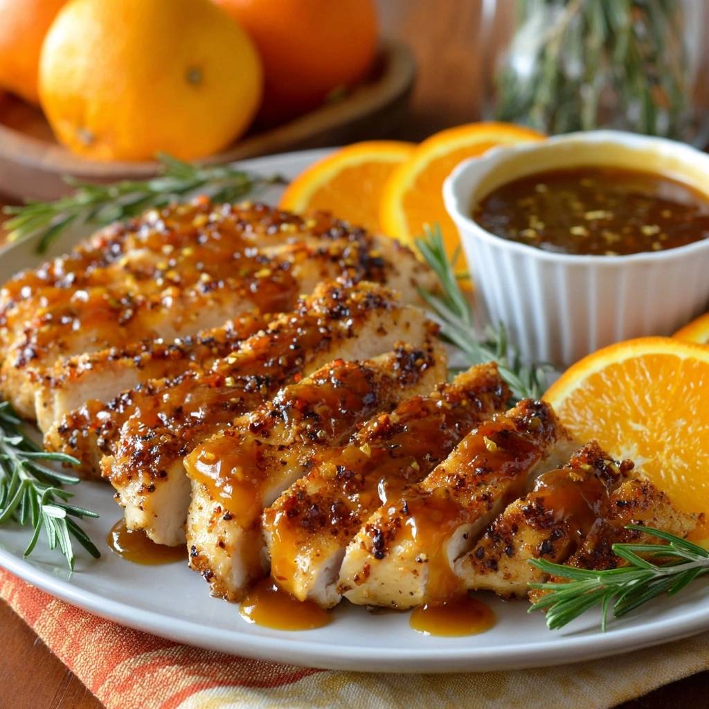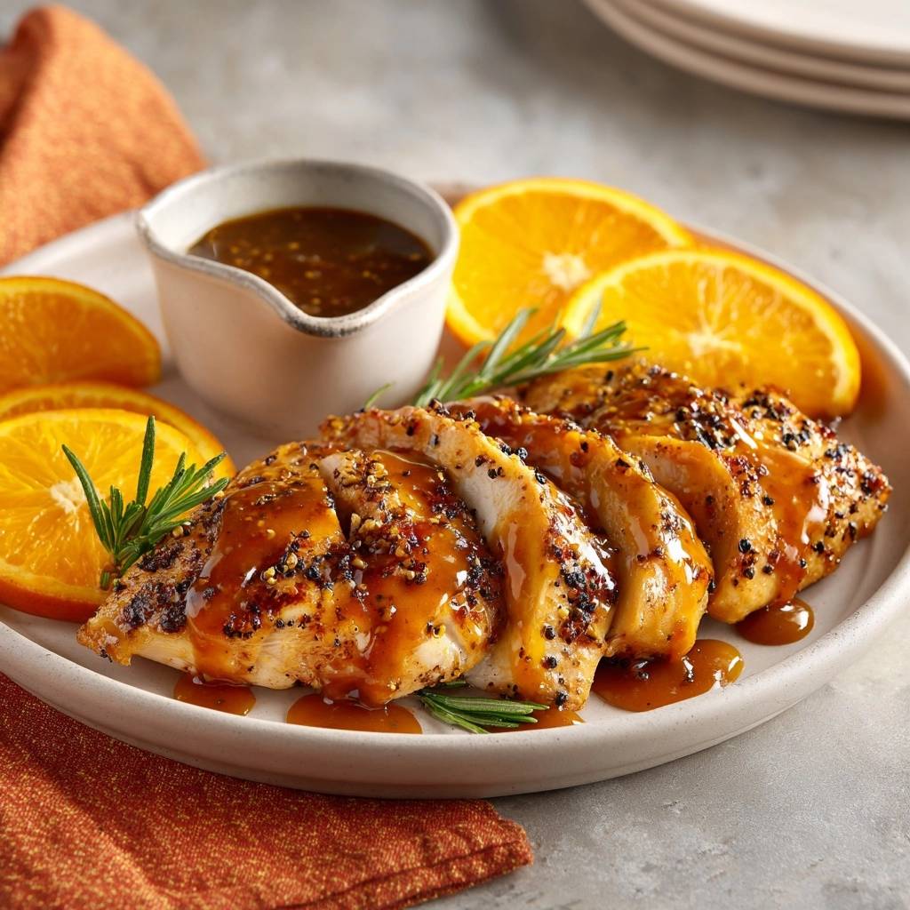 - Remove chicken to a plate, slice into strips. Drizzle with remaining glaze, garnish with rosemary sprigs and orange slices. Serve immediately for juicy, restaurant-worthy results every time.