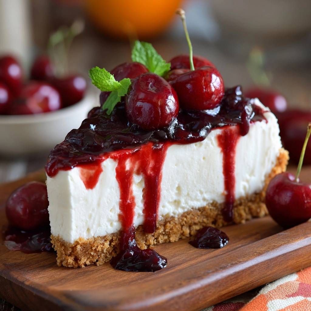Therefore, you get that pro-level smooth surface without the stress. In addition, the glossy fresh cherry topping adds juicy tartness that cuts through the richness. It’s the cherry cheesecake home bakers dream of, no disasters required.