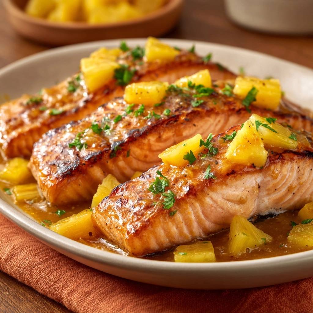 Thaw frozen salmon fully in the fridge first, then pat extra dry to avoid wateriness; add 2-3 extra bake minutes. Canned pineapple works in a pinch for chunks and juice, but drain well and reduce sugar by 1 tbsp since it’s sweeter. Fresh is best for enzyme tenderness, though.