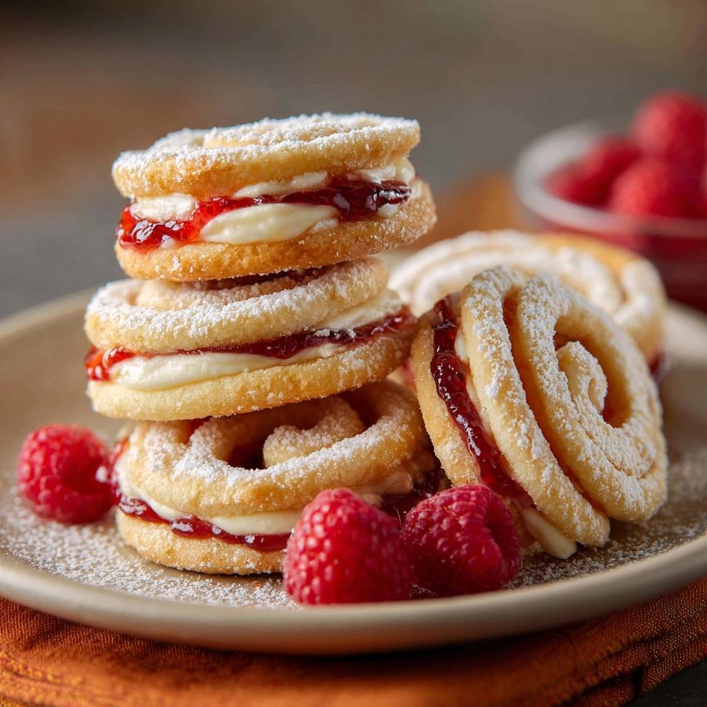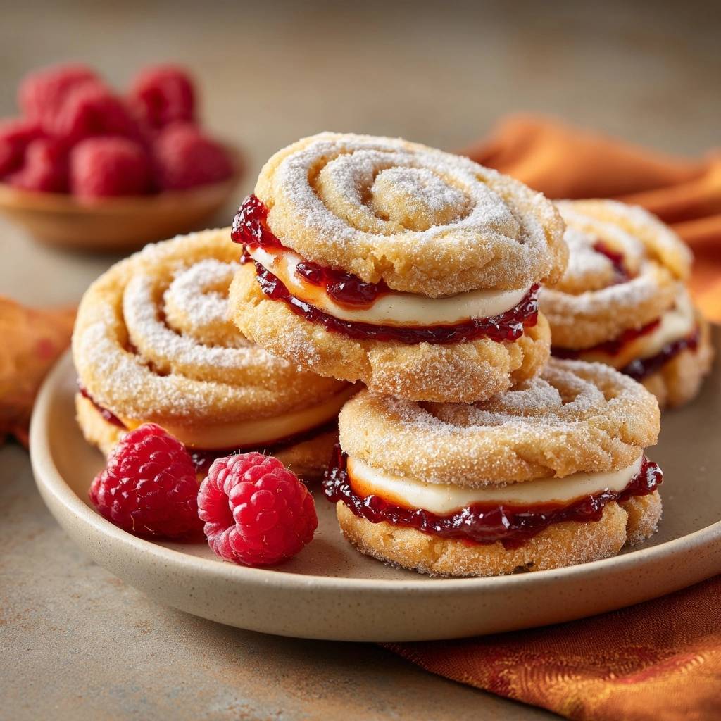 No raspberry jam? Use strawberry, blueberry, or blackberry for similar tartness; thin thick jams with 1 tsp water for piping. For dairy-free, swap heavy cream with full-fat coconut cream chilled overnight, whipping same way. All-purpose flour swaps to 1:1 gluten-free blend work, but expect slight texture change.