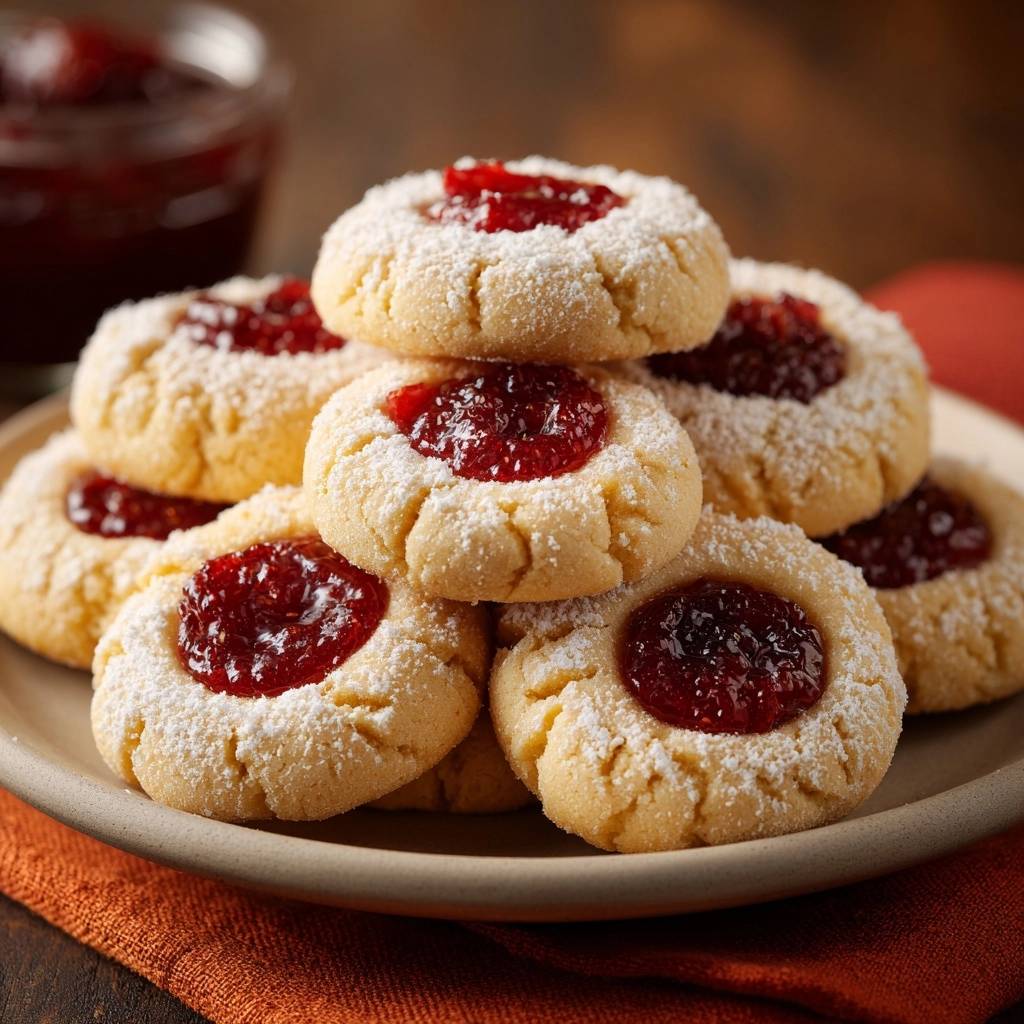 Keep them in an airtight container at room temperature for up to 5 days. They’ll stay crisp and the jam won’t dry out. For longer, freeze baked cookies up to 1 month in a freezer bag; thaw at room temp and re-dust sugar. Don’t fridge, as it softens texture.