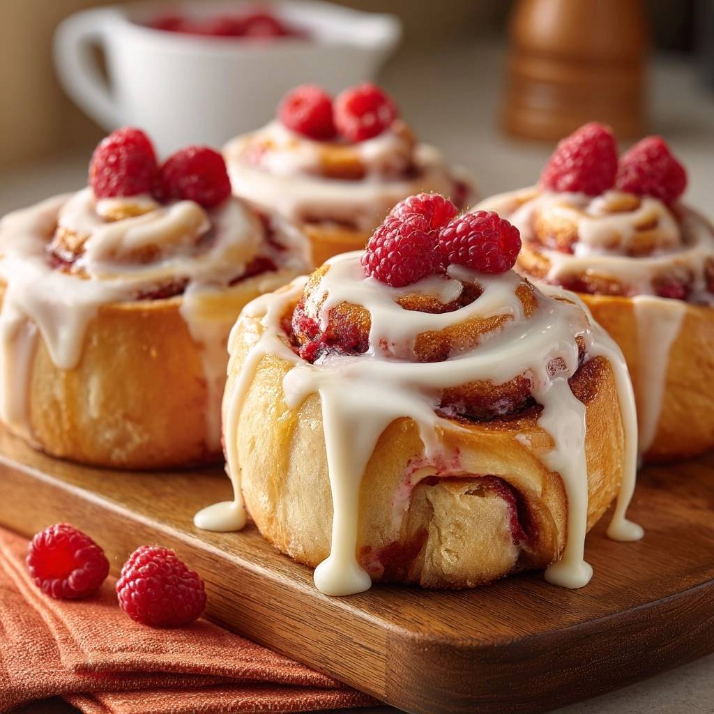 Tall, fluffy cinnamon rolls with perfect raspberry swirls and crisp bottoms, thanks to a simple filling trick that locks in moisture and prevents sogginess.