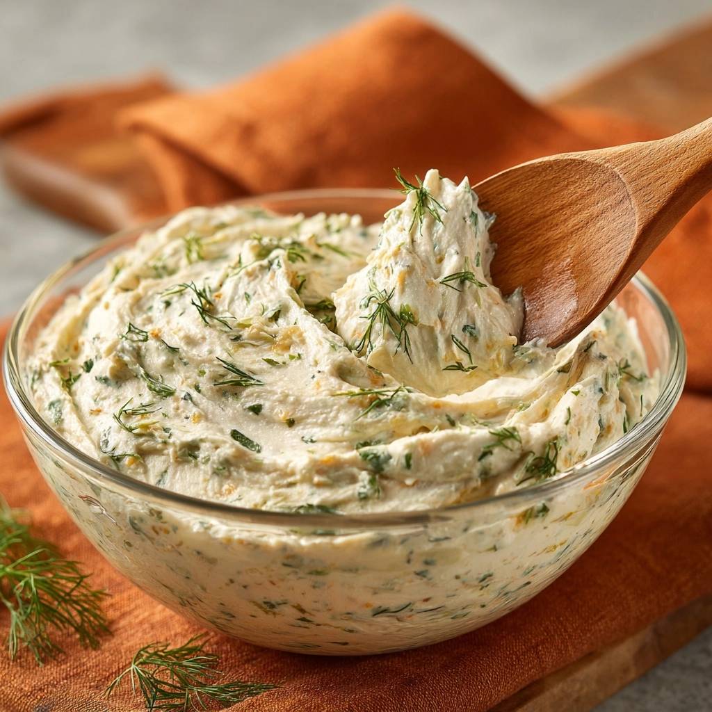 A thick and airy whipped cream cheese spread featuring fresh dill and lemon, designed with a moisture-locking technique to prevent sogginess.