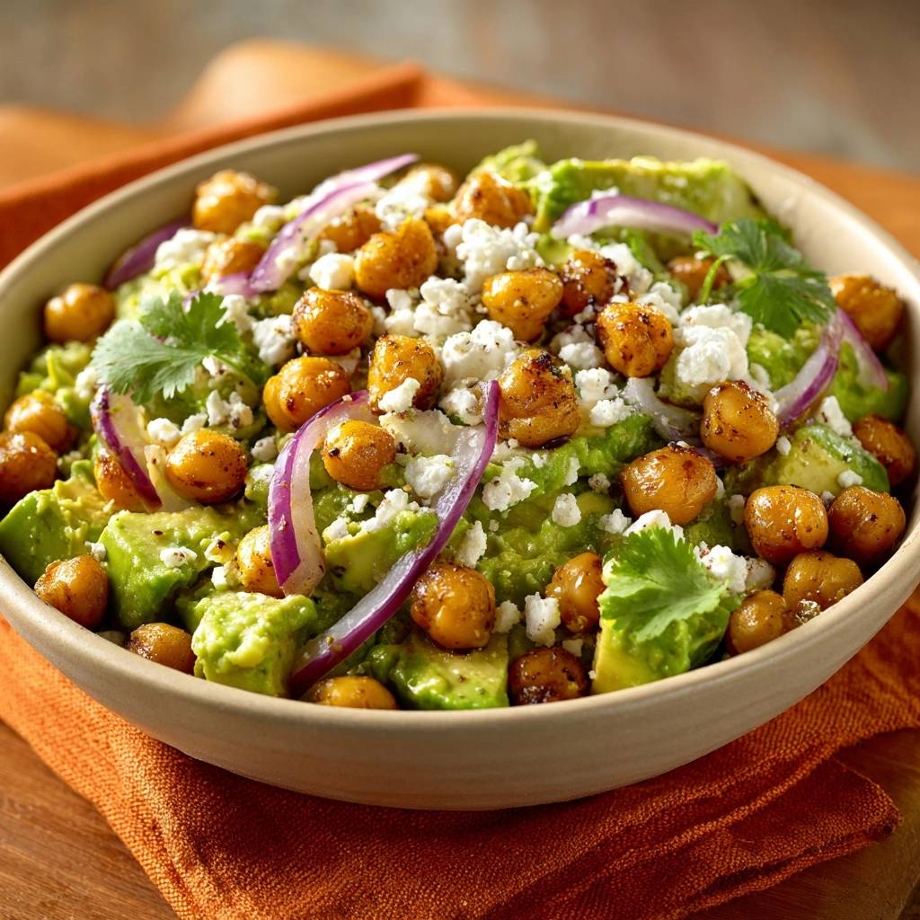 Under-season? Taste chickpeas post-roast and adjust. Therefore, your Roasted Chickpea Avocado Feta Salad stays vibrant. Common fix: revive limp onions by soaking slices in ice water 10 minutes.