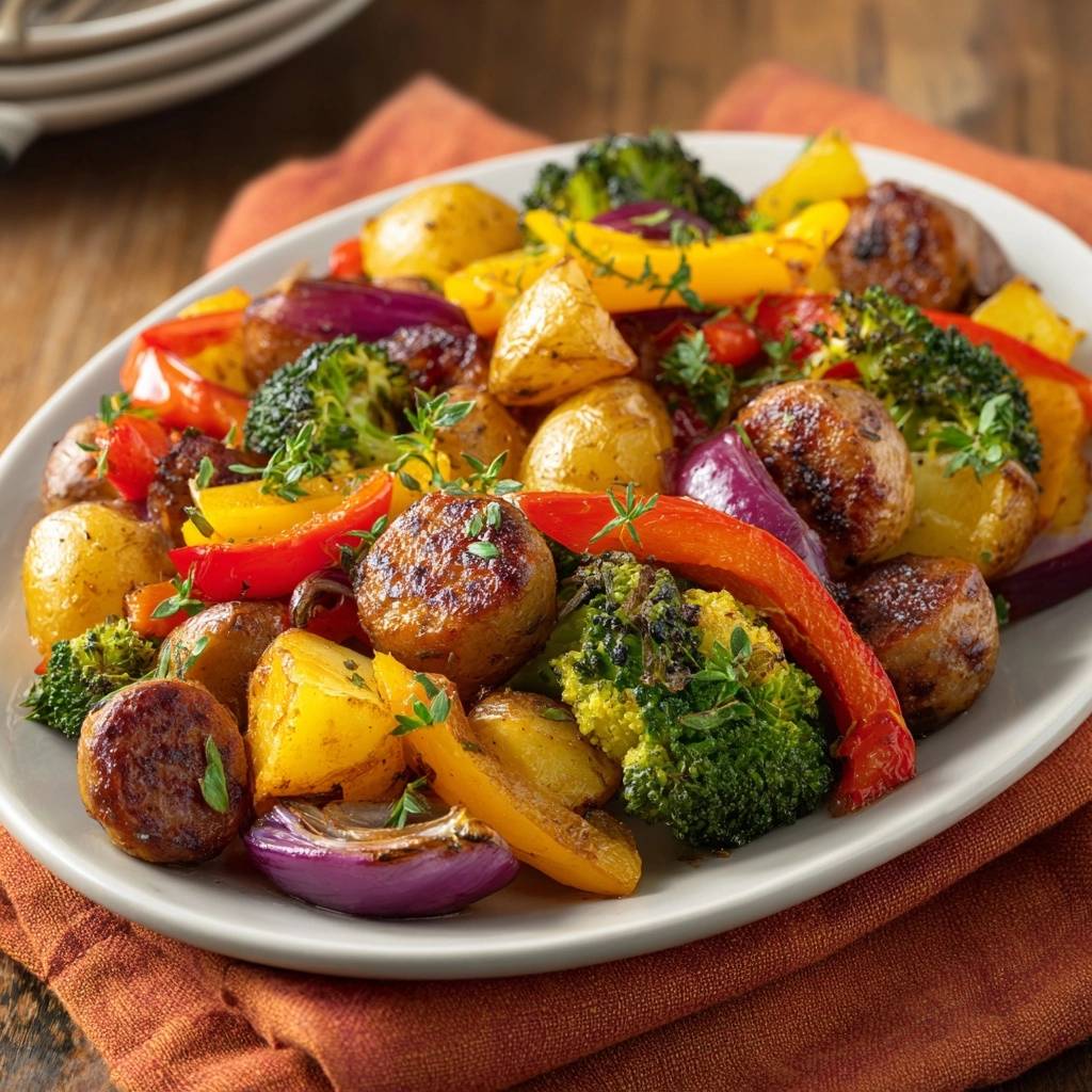Prep takes under 10 minutes, then it’s mostly hands-off. This scales easily for 4-6 servings, perfect for weeknight dinners or meal prep. Plus, you get lean protein from chicken sausage and vitamin-packed veggies roasted at high heat to retain nutrients.
