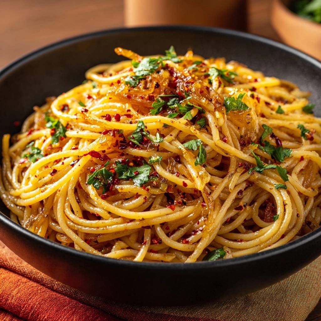 Ever scorched your onions chasing that deep caramelized gold? This silky caramelized onion spaghetti fixes that frustration with a foolproof low-and-slow method. Thin slices soften gently, turning jammy and sweet without a single burnt edge. You’ll get weeknight pasta that’s rich, spicy from chili flakes, and glossy from a starchy emulsion that clings to every strand.