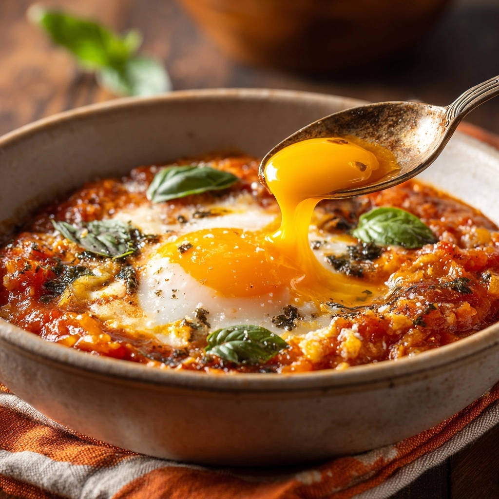 - THE PERFECT YOLK TECHNIQUE: Pour the hot, simmering tomato sauce directly into the oven-safe serving bowl. It is crucial that the sauce is already hot and steaming. This pre-heated base rapidly starts cooking the egg white from below, guaranteeing even cooking.