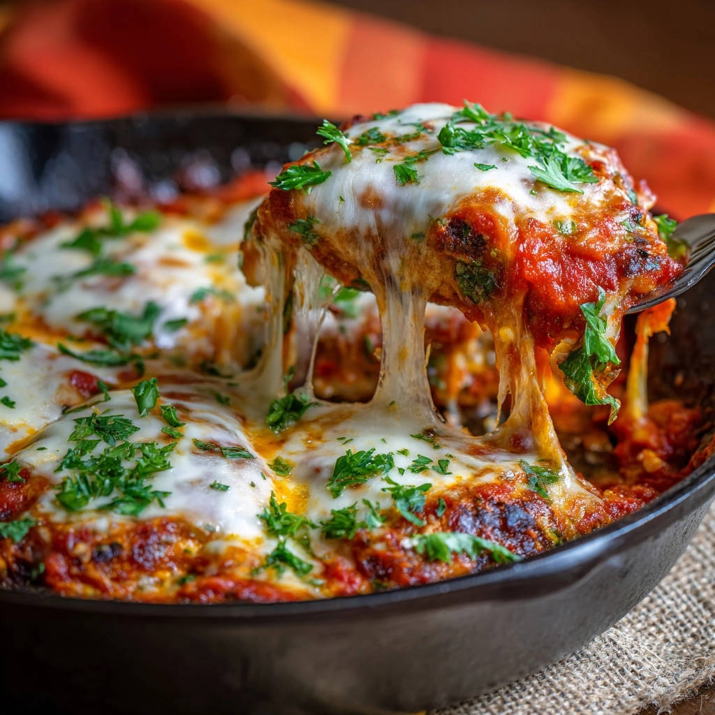 - Remove the skillet from the oven. Garnish with additional fresh chopped parsley before serving. Serve hot, directly from the skillet, with your favorite pasta or crusty bread for dipping.