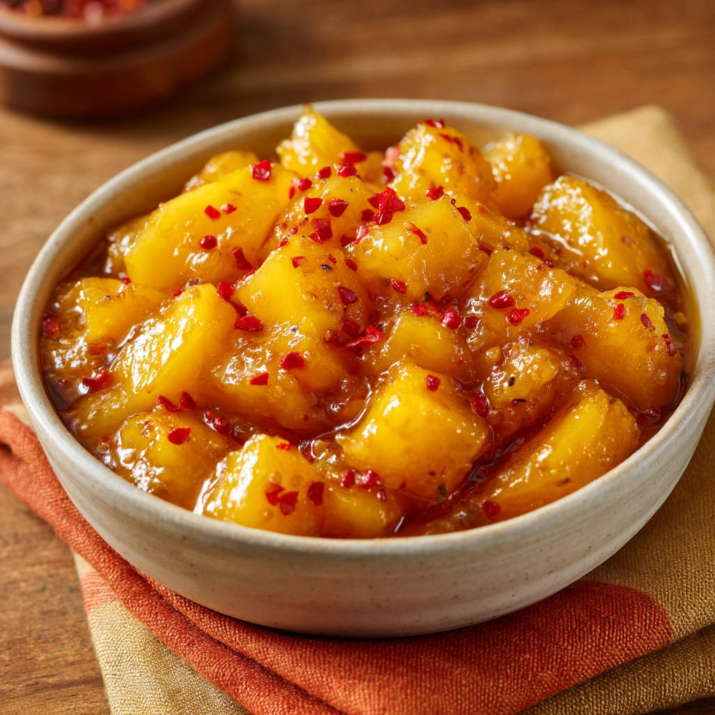 Definitely! The amount of red pepper flakes is completely adjustable. For less heat, start with just a pinch or omit them entirely for a sweet-only mango relish (though the spice is a great counterpoint!). For more heat, add an extra half teaspoon or full teaspoon of red pepper flakes during the simmering process, tasting carefully as you go.