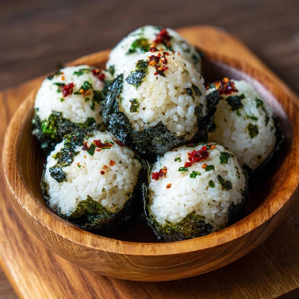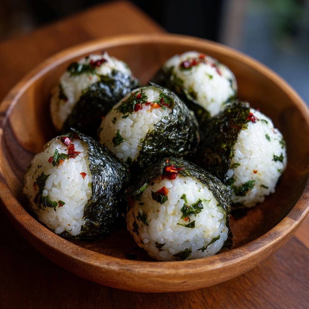 - Wrap nori strip around base of each onigiri while rice is still warm so it adheres without sogginess. Sprinkle tops with chopped green onions and red chili flakes. Serve immediately or chill briefly. Enjoy crumble-free bites!