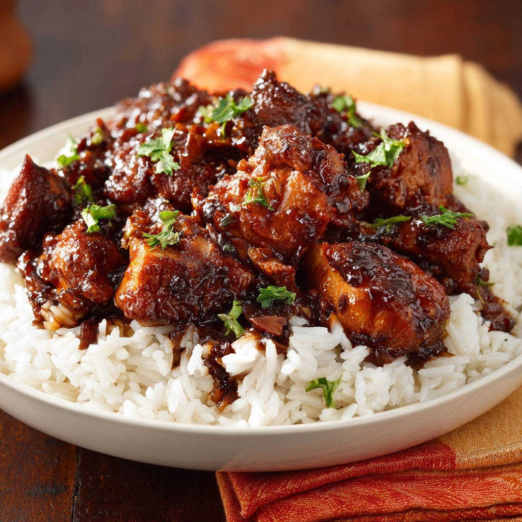 Enjoy Your Homemade Sticky Glazed Chicken and Rice!