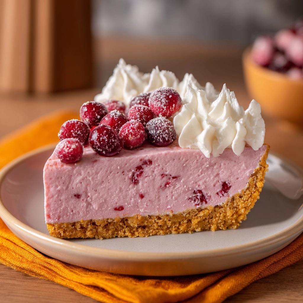 Assemble crust and filling a day ahead, chill overnight for best set. Add sugared cranberries and whipped topping same day to keep crunch.