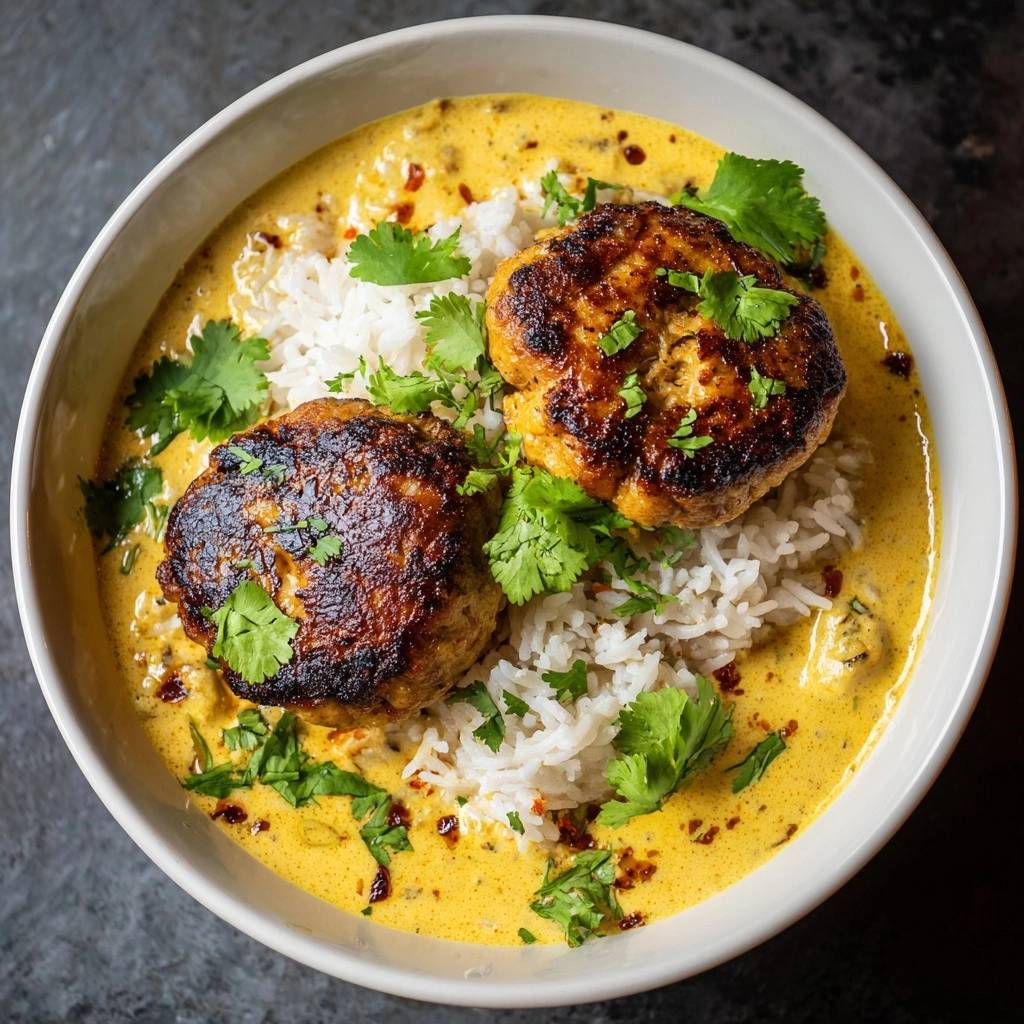 Perfectly intact, crispy-edged chicken koftas in a creamy coconut curry sauce. Foolproof method with chill and sear to prevent crumbling. Serve over rice.