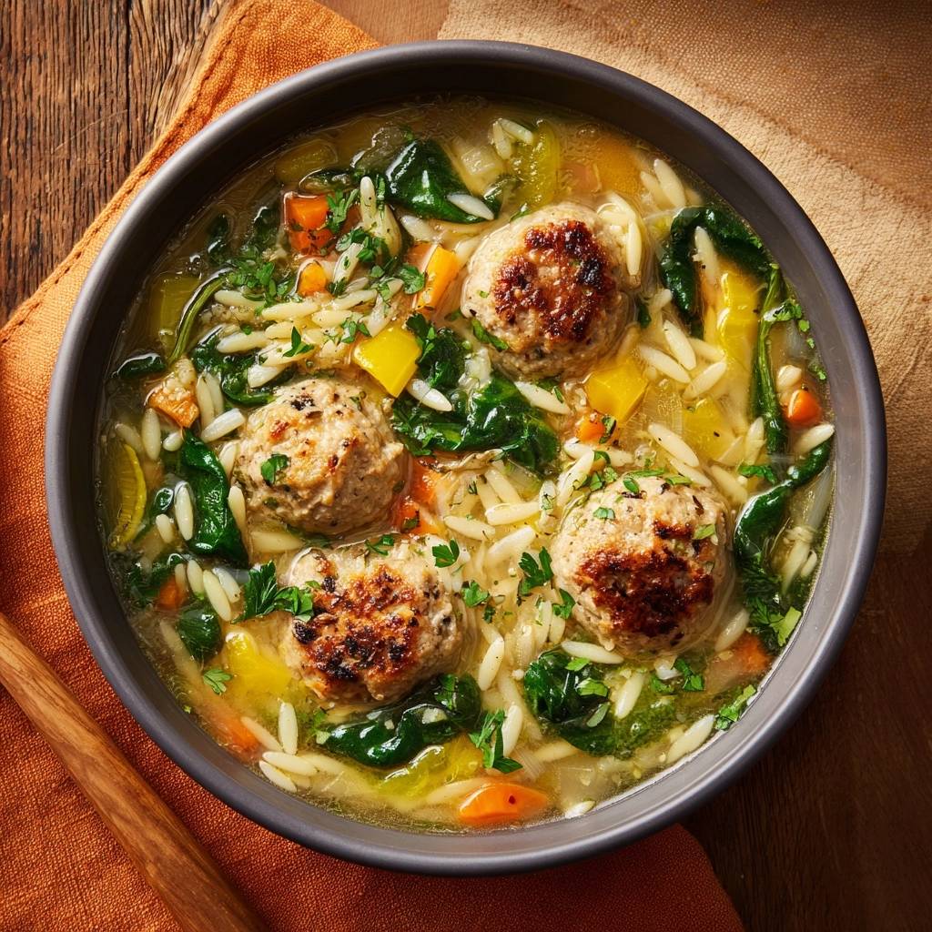 Italian Wedding Soup with Turkey Meatballs and Al Dente Orzo