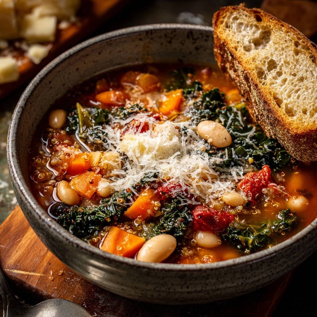 A rich and savory Tuscan white bean and kale soup featuring fire-roasted tomatoes and a secret bean-thickening technique for a full-bodied, never-watery broth.
