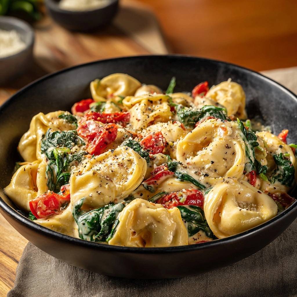 Creamy ravioli with spinach and sun-dried tomatoes in a rich sauce that stays perfectly thick—no watery mess. Quick-wilt and squeeze spinach for flawless results.