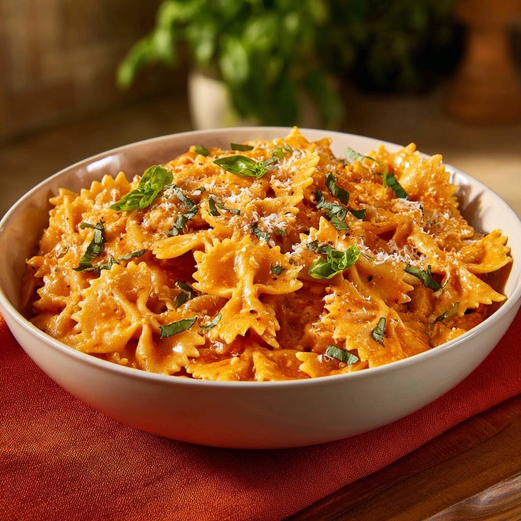 Foolproof creamy tomato farfalle pasta with a silky, never-watery sauce emulsified using starchy pasta water. Perfect weeknight dinner.