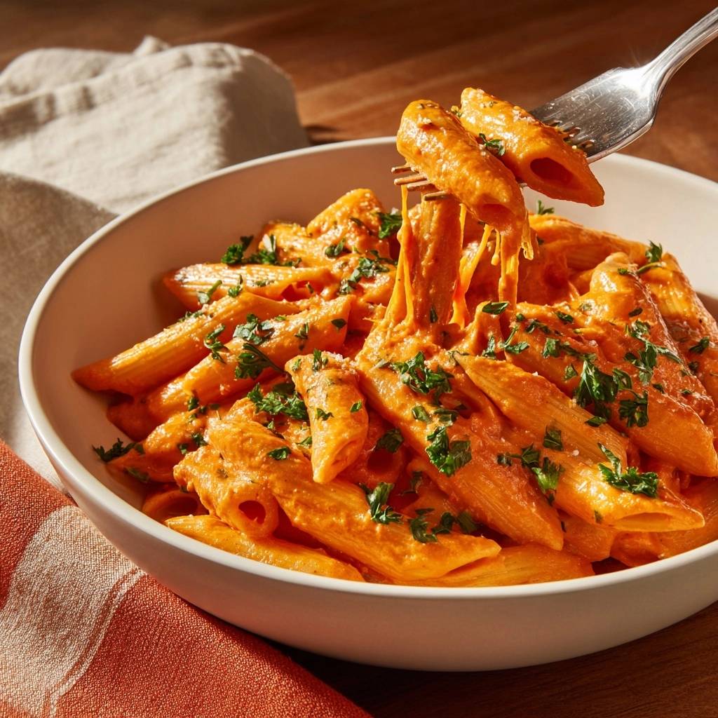Foolproof creamy tomato penne with emulsifying trick using reserved pasta water and off-heat cream for silky, non-separating sauce.