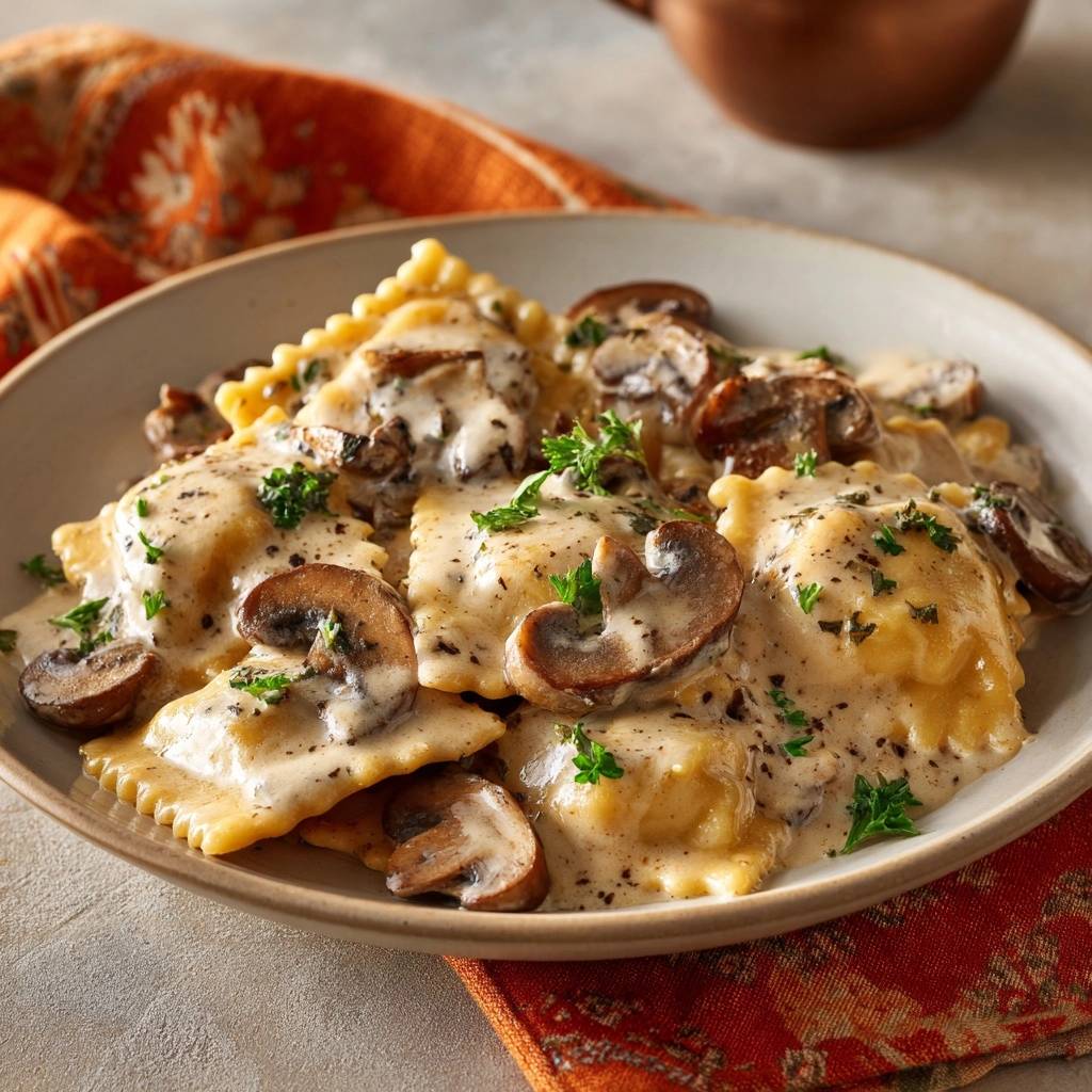Creamy mushroom ravioli with a thick, velvety sauce that never gets watery thanks to a high-heat sauté trick. Perfectly coated ravioli in under 20 minutes.
