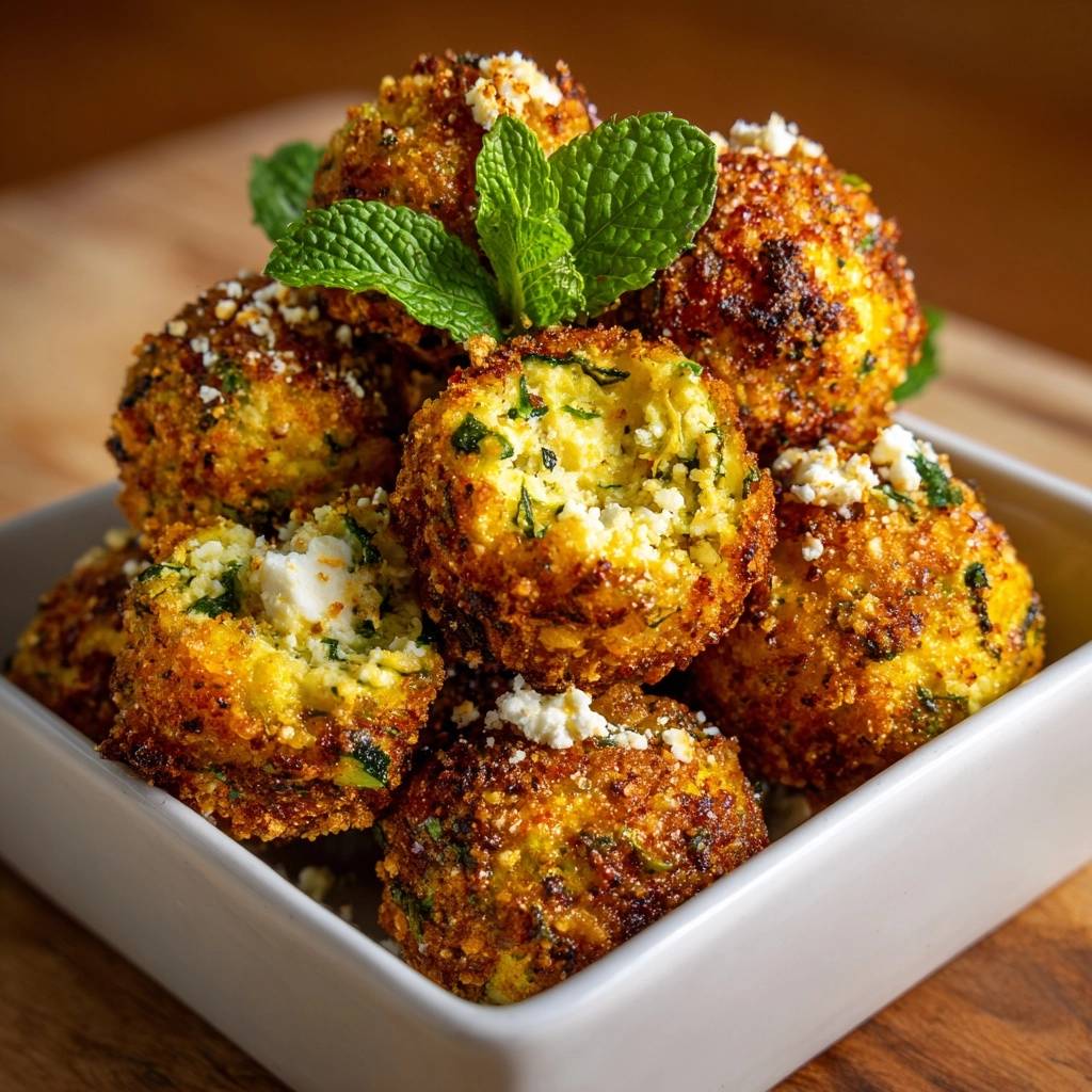Crispy zucchini feta balls that stay perfectly golden outside and tender inside—no more soggy fritters! Salting and squeezing removes excess moisture for unbeatable crunch.