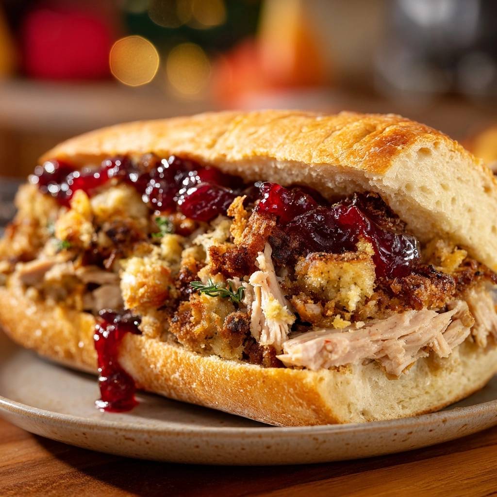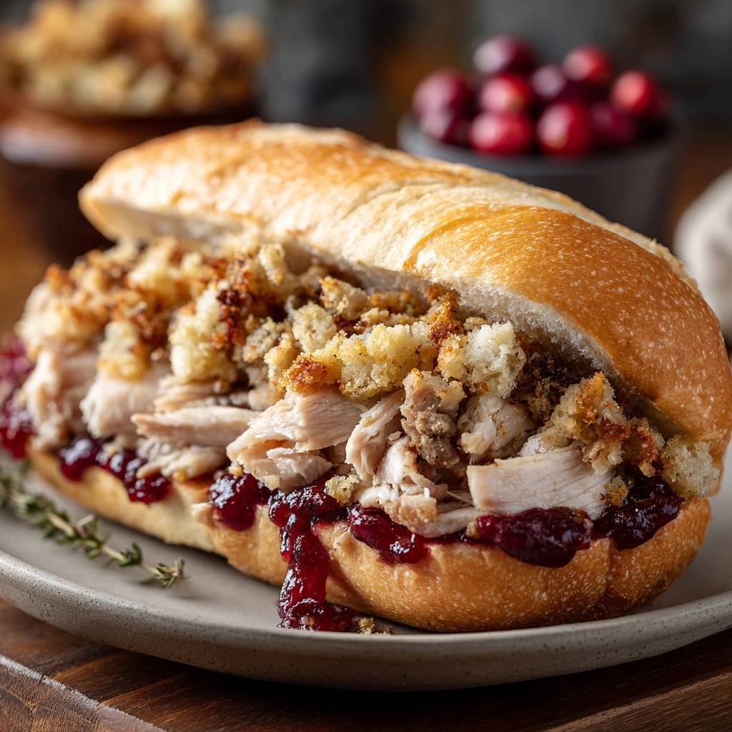 Grab gluten-free hoagie rolls or baguettes, which hold structure well. Check stuffing for wheat; many brands offer GF versions. Toast extra to compensate for softer crumb. Shredded turkey and cranberry stay the same. Your sandwich stays crisp and stacked.